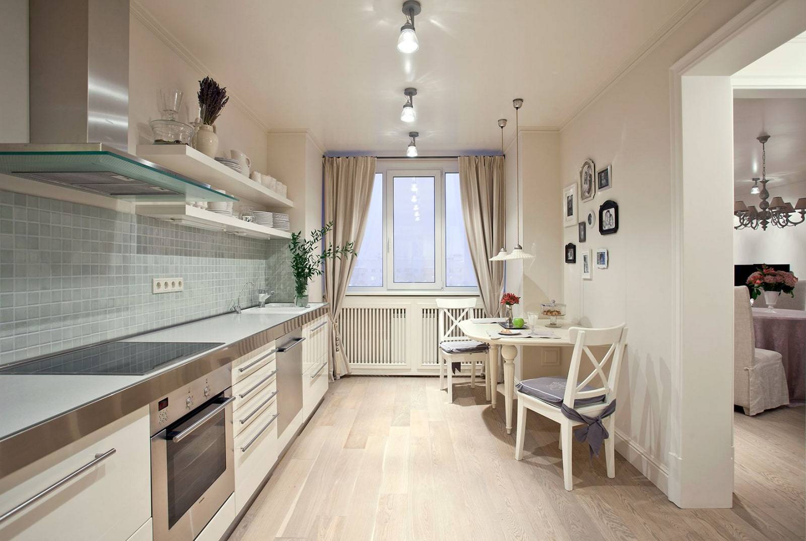 Оттенки белого в сочетании с деревом создают идеальный, легкий и воздушный дуэт. Интерьер выглядит очень естественно и чисто.