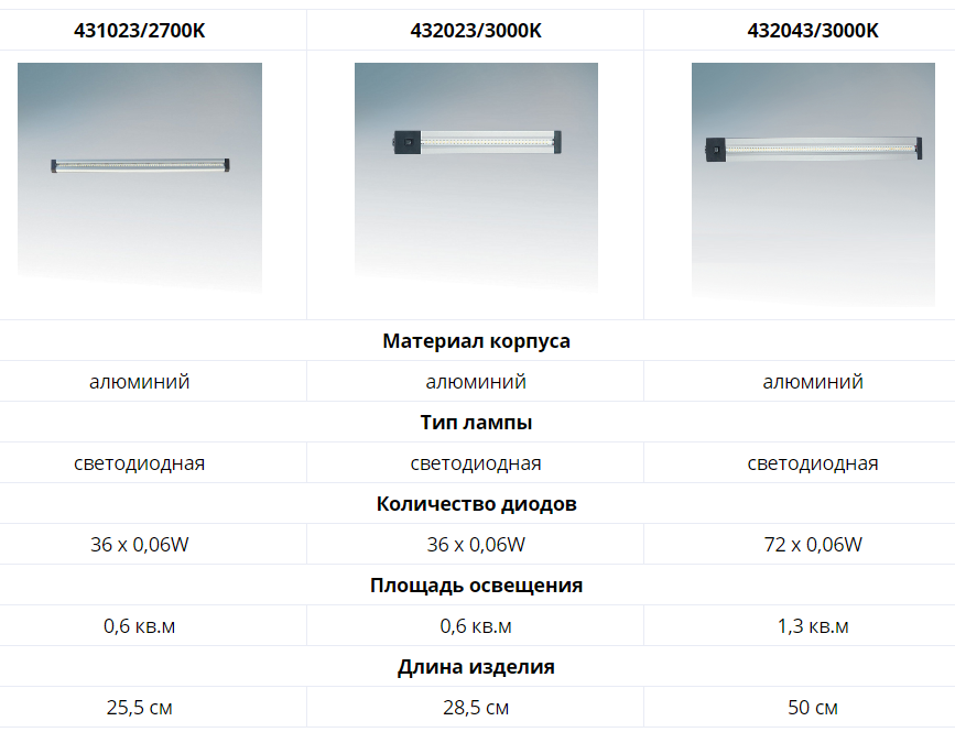 Обзорный формфактор является в два раза экономнее в сравнении с люминесцентным аналогом. Эксплуатационный срок составляет до 12 лет