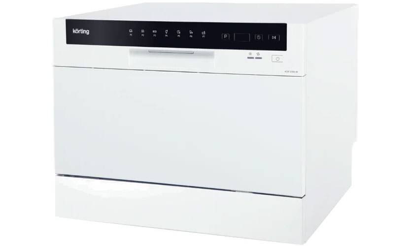 Третье место рейтинга занимает посудомоечная машина Korting KDF 2050 W немецкого производителя. Она, как и Flavia TD 55 Veneta P5 WH, рассчитана на 6 комплектов. 7 режимов мойки делают её практически универсальной — она отмывает стекло, фаянс, металл. Есть функция «Всё в одном»: можно использовать разные типы моющих средств одновременно. Цена — от 14 000 рублей.