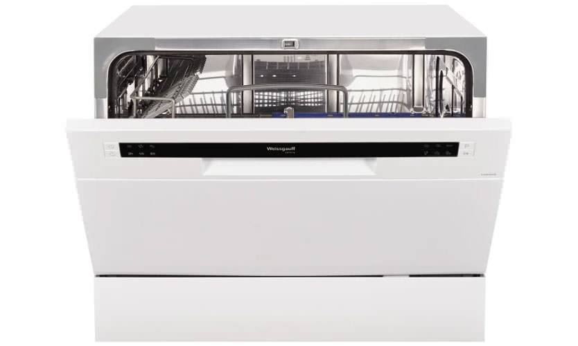 Компактные посудомоечные машины выпускают специально для маленьких кухонь, могут стоять на столешнице кухонного гарнитура или прятаться в шкафчике. При скромных размерах моют они отлично.