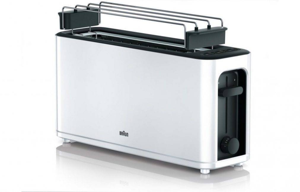 Элегантный, функциональный тостер Braun HT 3110 порадует своего владельца высокой мощность – 1000 Вт. Особенность модели заключается в наличии одного отделения под приготовление хлеба: пользователь сможет расположить внутри два ломтика продукта друг за другом. Данная модель получила награду как лучший продукт года в сфере инновационных решений.