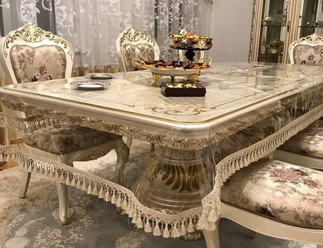 Скатерть «гибкое стекло» (как ПВХ, так и силикон) может быть изготовлена строго по размеру стола, не выходя за его края. Его также можно уложить на текстильное покрытие, тогда узор или узор будут смотреться более объемно и эффектно.