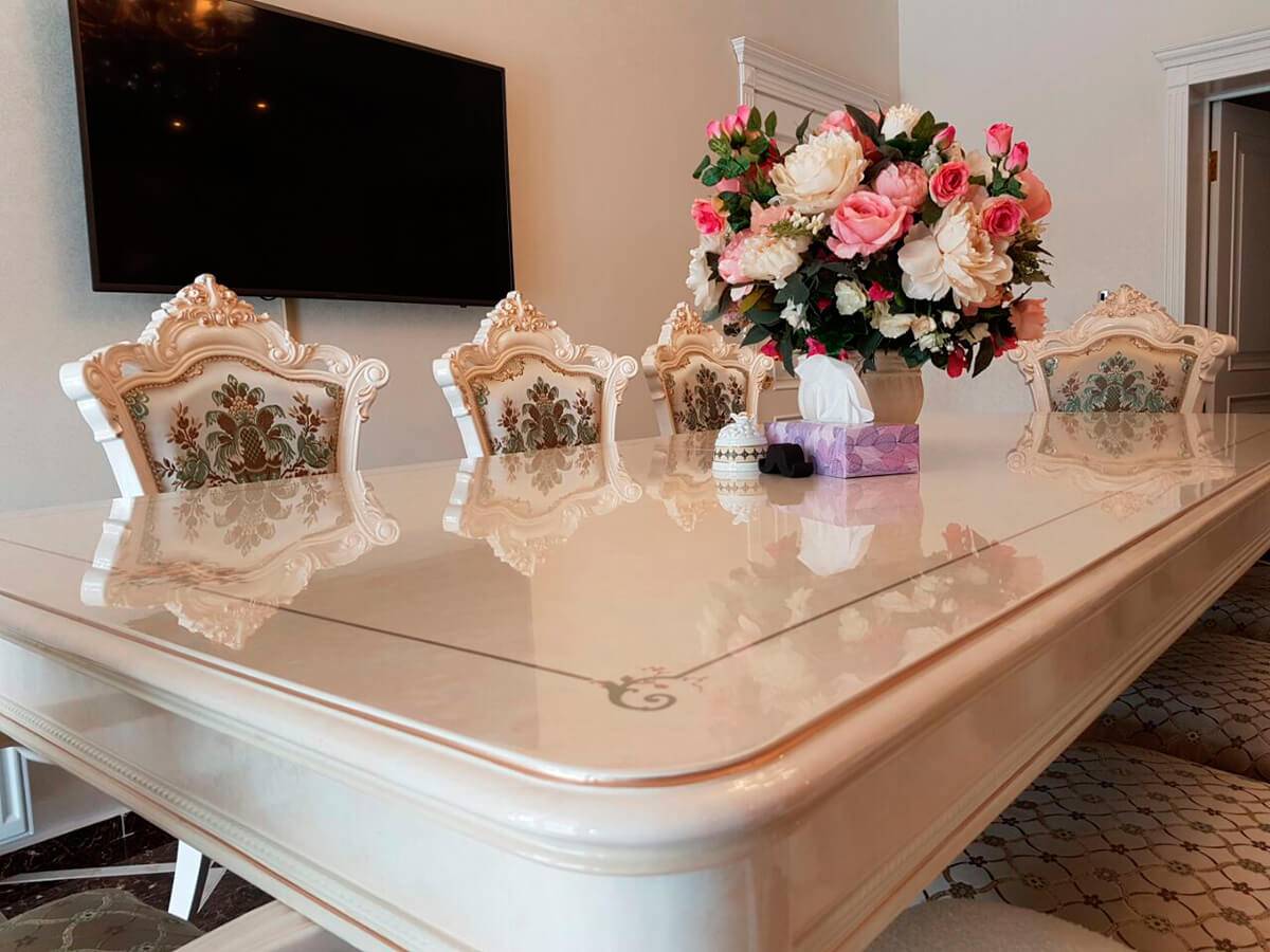 - прозрачная пленка на столе защитит его от воздействия ультрафиолетовых лучей, попадания влаги и бытовой химии;