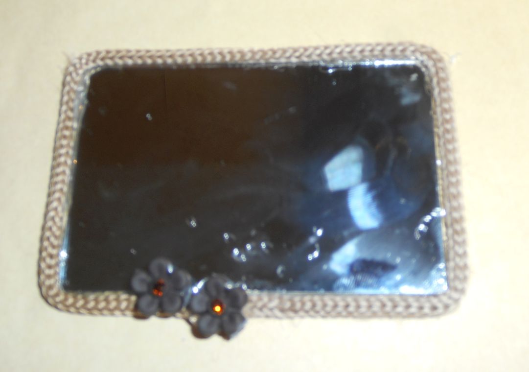 Далее приступайте к декорированию изделия. На крышку с внутренней стороны, с помощью горячего клея (пистолета) или клея «Момент» закрепите зеркало.