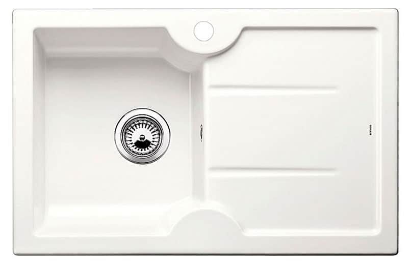 Blanco Idessa 45S – изделие обойдется в 31 200 рублей. Эта раковина выполнена из глянцевой белой керамики и имеет параметры 35 x 42 см. В линейке присутствуют несколько оттенков и габаритов моек для разных шкафов. Предусмотрено большое крыло с желобами для стекания жидкости. Также есть интегрированный перелив. При всей своей внешней простоте смотрится весьма эффектно и изысканно, благодаря продуманному дизайну и врезной встройке.