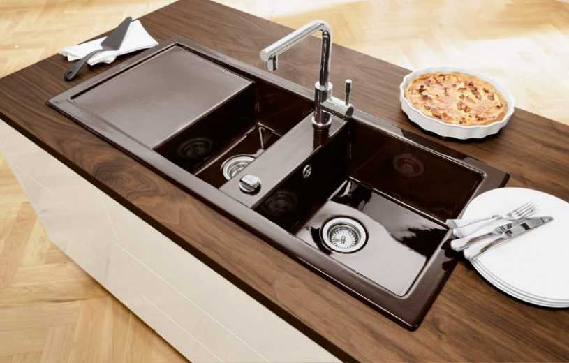 Разнообразие мира сантехники позволяет укомплектовать раковиной любую оригинальную кухню. Учитывая возможности производства мебели, постоянное усовершенствование дизайна, ассортимент мойки постоянно обновляется. Основным спросом пользуются устройства с двумя чашами, специальными бортиками по краям. Такая модель позволяет хозяйке выполнить разную работу одновременно: