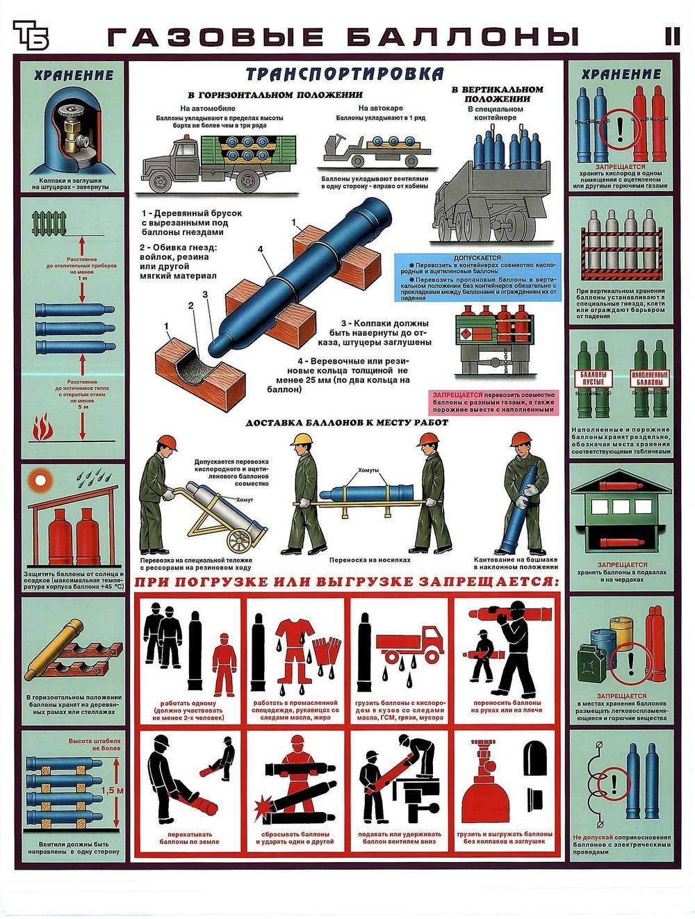 - Категорически запрещена совместная транспортировка резервуаров с разными газами, а также порожних/израсходованных вместе с полными.