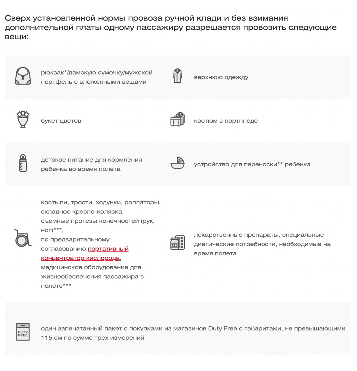 К вещам, которые можно провезти бесплатно, относятся:
