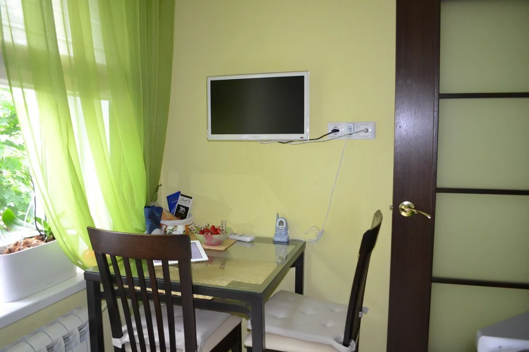 Практически в каждой кухне стоит телевизор. Женщины готовят и занимаются домашними делами под сериал или программу. Удобнее разместить аппарат в углу комнаты. Учитывайте планировку кухни и размеры.