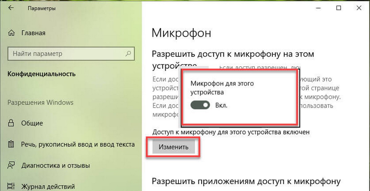 Разрешить системе использовать микрофон в Windows 10 версии 1803.