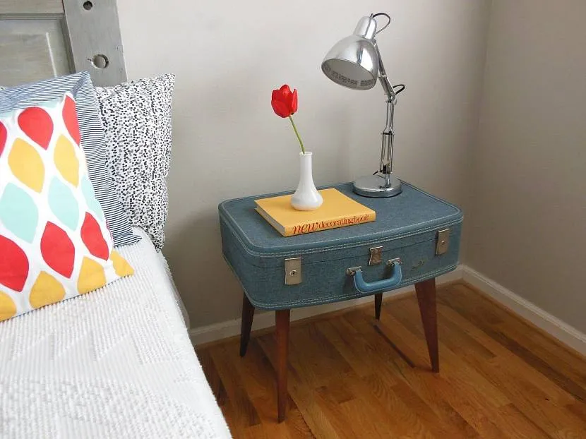 Пригодится также чемодан в интерьере спальни. Перед сном удобно оставить книгу, телефон или будильник на прикроватной тумбочке, которую можно выполнить из старого саквояжа. Это придаст комнате особого шарма и поможет создать неповторимый стиль.