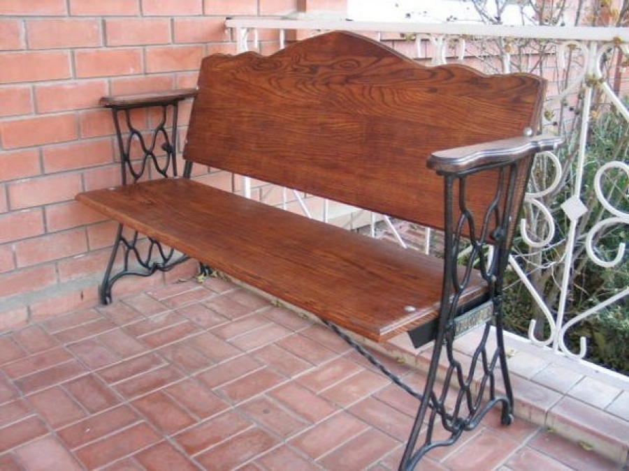 Садовая лавочка в ретро стиле станет отличным решением для дачи или загородного дома. Для этого нужно взять ножки от швейной машинки, а сверху прикрепить сидения из дерева. Все покрасить и залакировать.