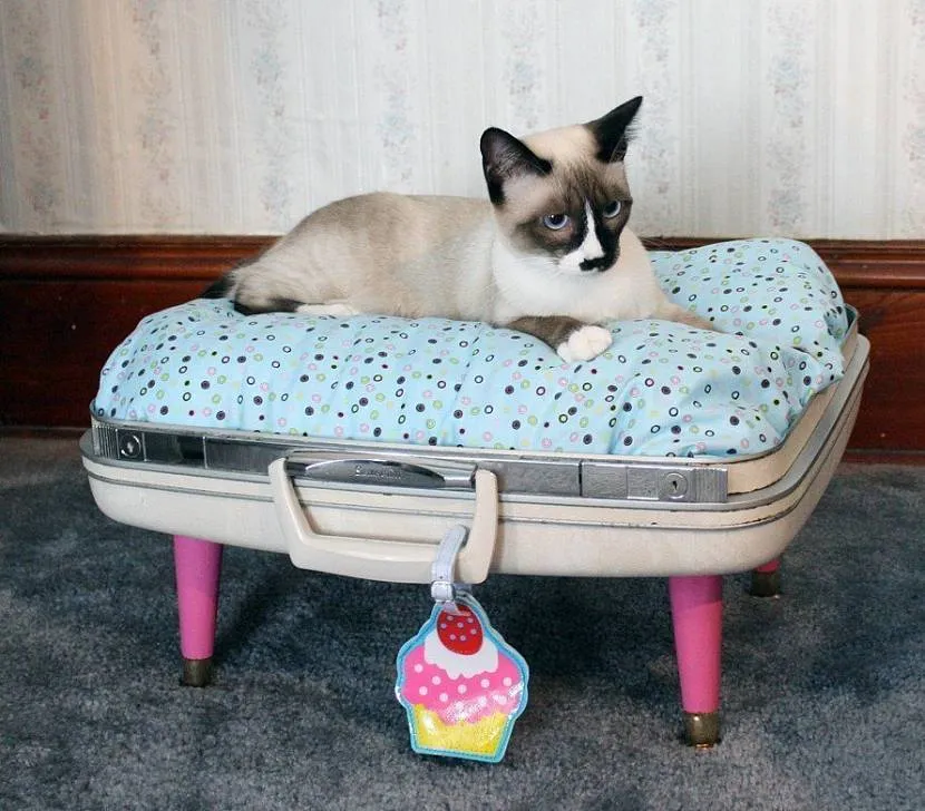 Кошки и собаки любят лежать на теплых приятных поверхностях не меньше людей. Уютные мягкие лежанки для животных можно создать самостоятельно из старых чемоданов. Их достаточно легко изготовить из подручных предметов, не затрачивая много времени и сил. Нужно будет взять любую половинку чемодана и поместить в нее подушку. При желании можно дополнить конструкцию ножками, чтобы она находилась на некоторой высоте над полами.