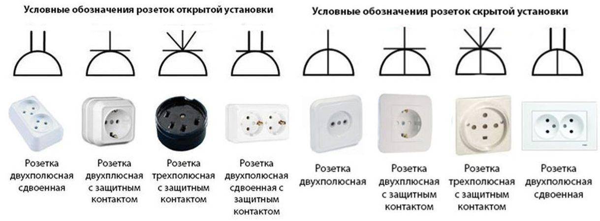 При проектировании и строительстве электрических систем очень важно правильно оформлять технические схемы. Графически розетки обозначаются очень легко — в виде полукруга с набором чёрточек, что позволяет легко наносить изображение на чертежи, схемы или эскизы