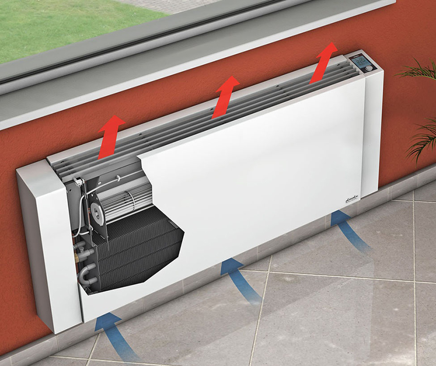 Принцип действия конвекторного радиатора — элементарное физическое явление: холодный воздух движется вниз, а горячий поднимается вверх. Происходит обычное перемещение воздуха в пространстве.