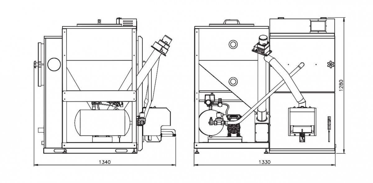 - Само устройство пеллетного котла и топливного бункера.