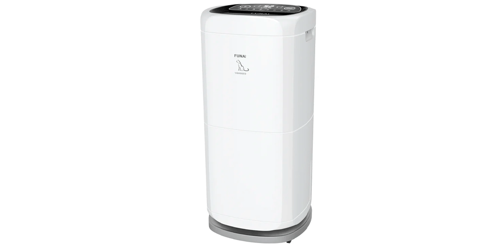 Шестое место ТОПа занимает осушитель FUNAI YAMANEKO (RAD-Y60T7E). Это самая дорогая модель в рейтинге, обладающая вытянутым корпусом, оснащённая колёсиками и двумя удобными ручками по бокам. Это самый производительный осушитель в рейтинге — до 60 л в сутки. Он оборудован большой съёмной ёмкостью для сбора конденсата на 8 л, которая оснащена удобной для переноса ручкой. Для продолжительной автономной работы можно реализовать слив конденсата в дренажную систему.