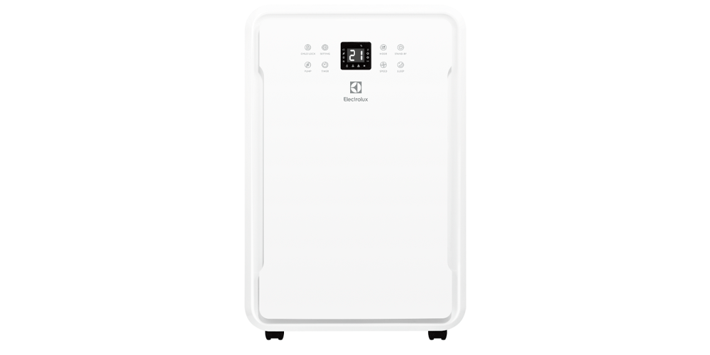 На втором месте стоит Electrolux EDH-65L. По габаритам он практически аналогичен модели FUNAI YAMANEKO, оснащен такими же ручками и колёсным шасси, а также большим баком для сбора конденсата – 8,5 л. Модель со встроенной помпой, с помощью которой автоматически осуществляется откачка конденсата через дренажный шланг в канализацию. Также слив можно организовать в ёмкость. Работать может на 4 режимах: осушение до целевого уровня влажности, непрерывное осушение, максимальное осушение, вентиляция воздуха.