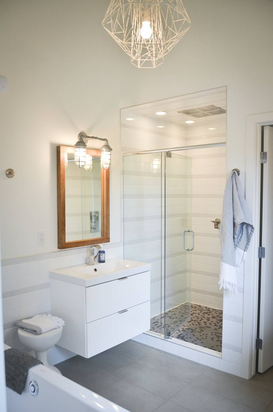 Правильная организация света в ванной комнате должна обеспечивать разные потребности пользователей. Основной принцип, которым следует руководствоваться, размещая светильники, таков: свет должен быть достаточно ярким, но не слепящим и не назойливым