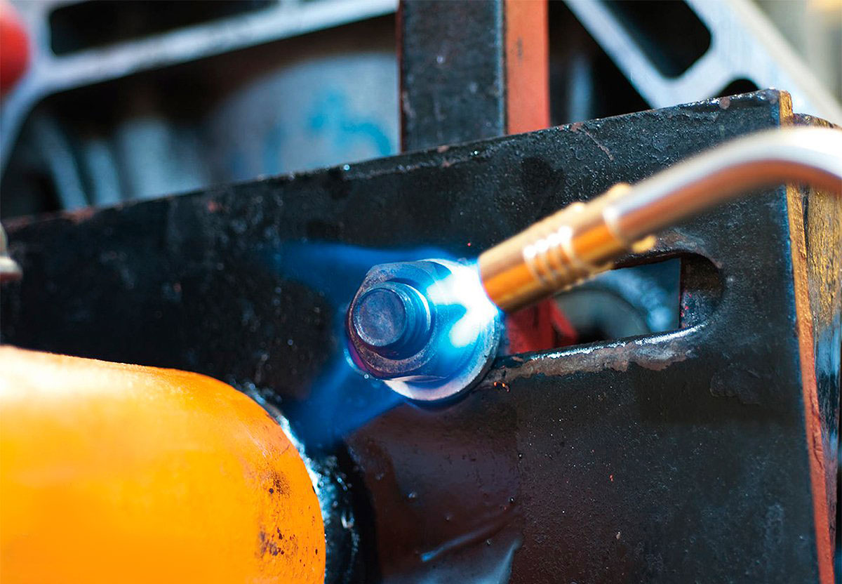 Нагревать болтовое соединения можно с помощью газовой горелки или паяльной лампы. Однако в процессе нагрева будьте осторожны, чтобы не устроить пожар.