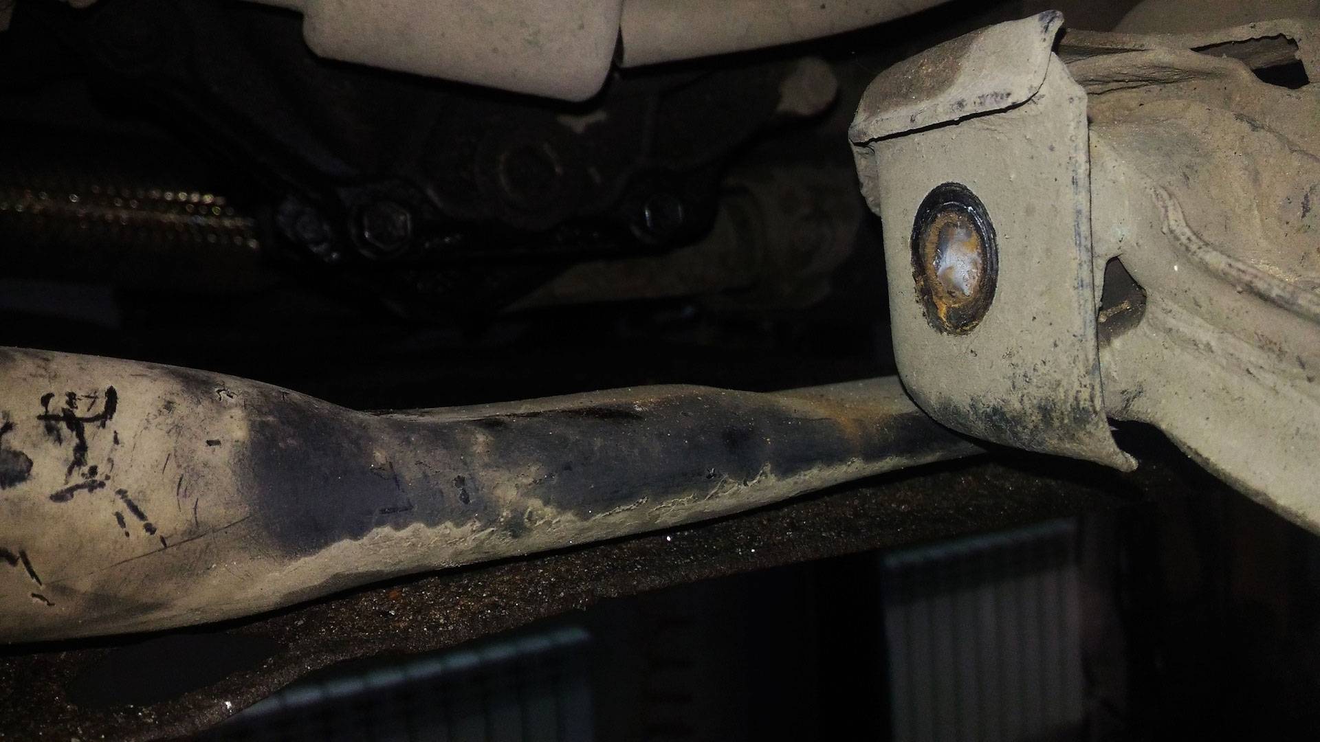 Отпилив рычаг и проушину, вытаскивают ее с внутренней втулки сайлентблока. Внутреннюю втулку с болтом спилить сложнее, чем рычаг, поскольку они утоплены в подрамник и болгаркой до них добраться трудно.