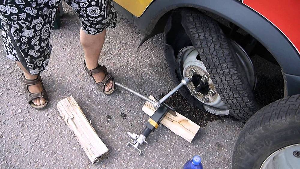 Установив домкрат и подложив под машину какие-нибудь подставки для надежности, снимают колесо, кулак и приступают к работе