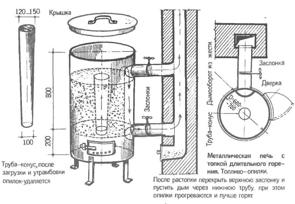 Конструкция во многом напоминает буржуйку, а проще всего сделать печь из бочки. Порядок работ: