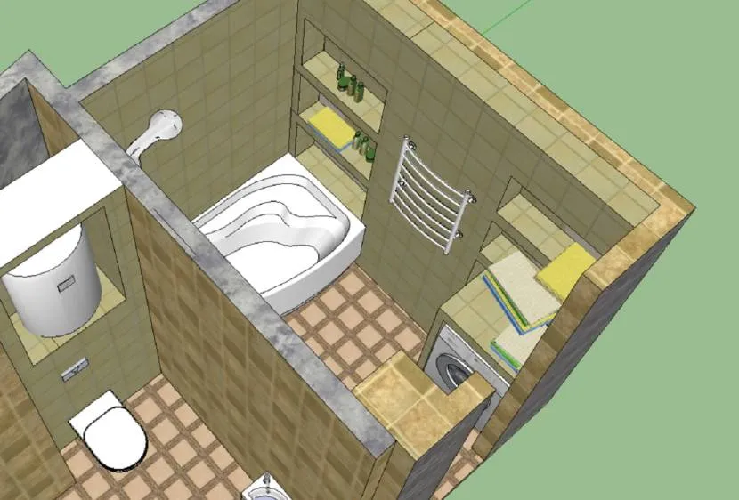 Дополнительные неприятности может привести к необходимости установки бытовой техники – стиральной машины, бойлера и т.д. Наряду с этим наиболее приемлемый вариант планировки предполагает не только рациональное и эргономичное, но и гармоничное с позиций дизайна размещение всех объектов.