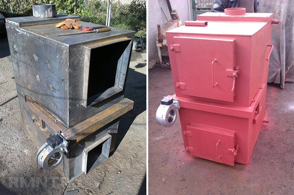 После сваривания конструкций рекомендуется их первичный отжиг при температуре не менее 700 °С в течение 2,5–3 часов. Достаточно загрузить внутренность сваренного корпуса каменным углём и разжечь горючее, обеспечив слабый принудительный поддув. Перед проведением отжига желательно протравить сварочные швы специальной пастой, соответствующей используемой марке стали.