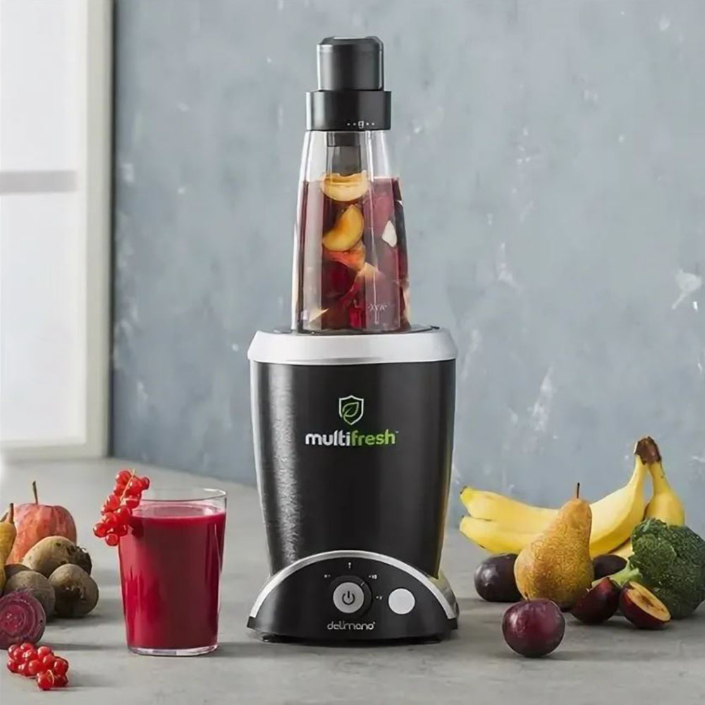 Многофункциональное устройство станет прекрасным помощником на любой кухне. Благодаря откачиванию воздуха предотвращается процесс окисления продуктов, а вы получаете больше витаминов и питательных веществ. Вкус, консистенция, аромат и польза ваших смузи, крем-супов, напитков, пюре для детского питания выходят на качественно новый уровень. Модель характеризуется отличной мощностью и привлекательным внешним видом, который отлично впишется в любой интерьер. База с мотором, а также дополнительные аксессуары позволяют использовать экстрактор питательных веществ MultiFresh шестью разными способами. Непревзойденная мощность и простота в использовании позволяют смешивать, вакуумировать, нагревать, измельчать, использовать импульсный режим и смешивать в вакууме.
