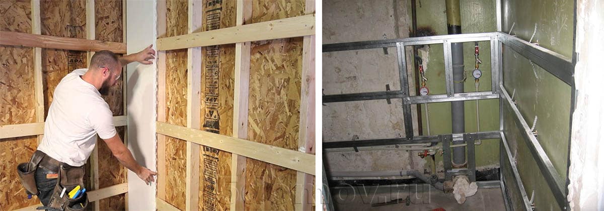 Слева — деревянный каркас (обрешетка), справа — металлический