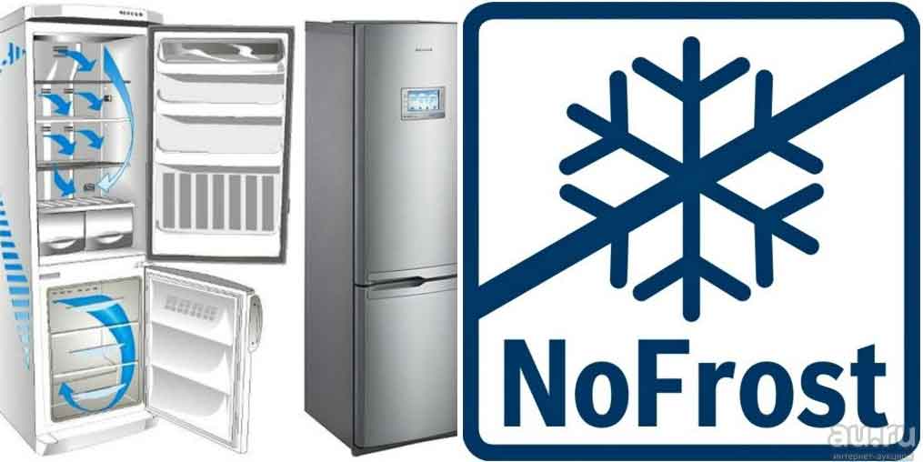 Испаритель находится за задней стенкой приборов No Frost. Над ним расположены вентиляторы, препятствующие образованию наледи. Излишек влаги намерзает на испарителе. В период отдыха компрессора жидкость оттаивает, по специальным желобкам стекает в резервуар и испаряется.
