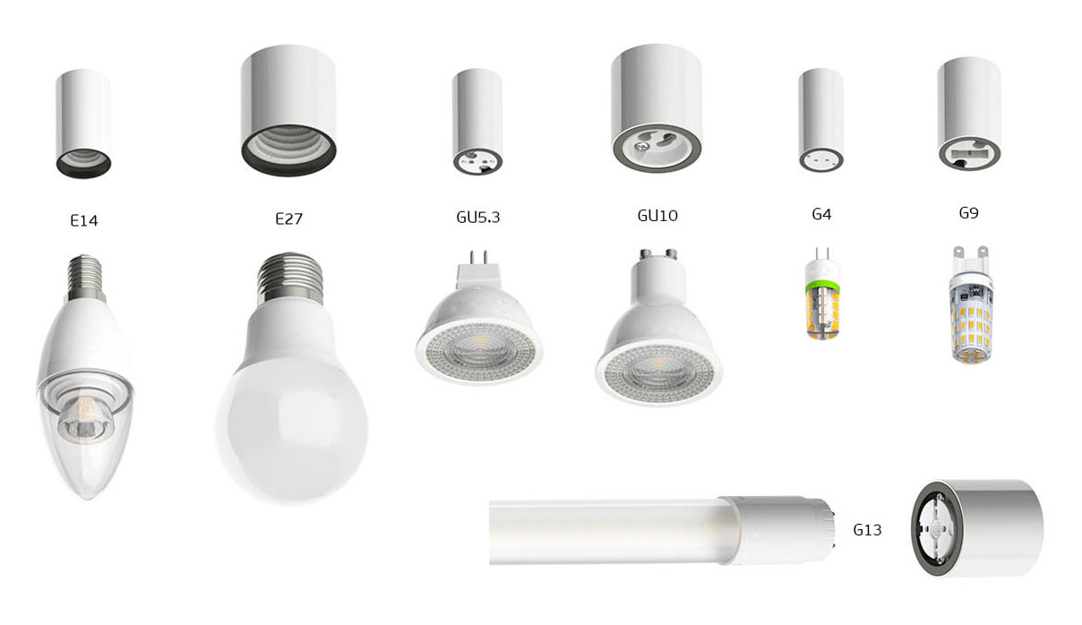 Тип цоколя – вот на что необходимо в первую очередь обратить внимание. В настоящее время наибольшее распространение получили следующие разновидности: