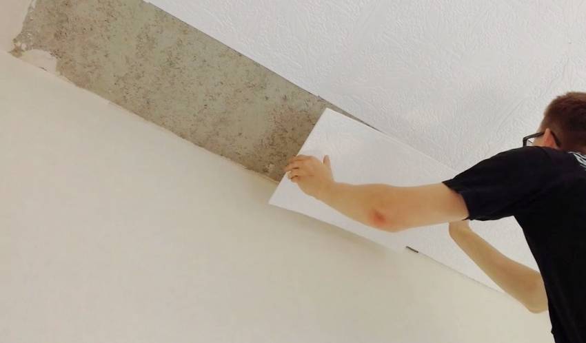 Другие виды краски также рекомендуется удалять, в крайнем случае, убирать все вздувшиеся участки шпателем. Водоэмульсионку убрать проще других красок. Для этого на потолок обильно распыляют воду, создают в комнате сквозняк, через полчаса легко удаляют покрытие шпателем. Также не стоит пенопластовую плитку клеить на обои – этот тип потолочного покрытия также надо убрать.
