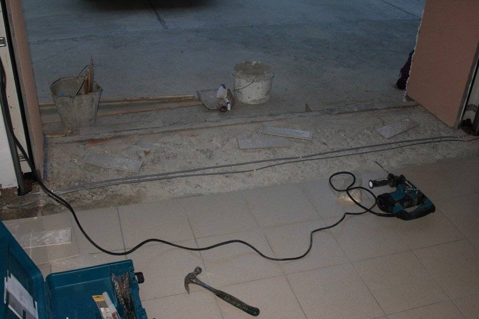 В холодных регионах, чтобы не возникло проблем с промерзанием ворот к полу, под плитку укладывается саморегулирующийся греющий кабель.