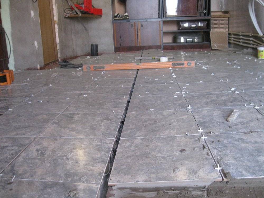 Напольная облицовка гаража почти не отличается от укладки плитки в других местах. Поэтому разберём нюансировку.