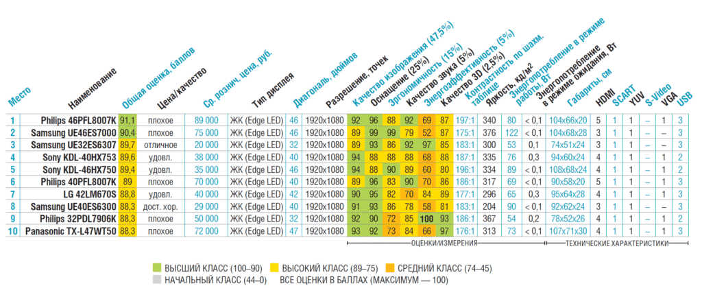 В зависимости от размера экрана они потребляют от 110 до 30 Вт. Средняя потребляемая мощность варьируется от 60 до 70 Вт.