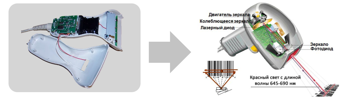 В большинстве случаев сканеры имеют специальную оптическую систему, состоящую из линзы и провода излучателя. Это позволяет считать штриховой код за одно наведение. Для этого оператору достаточно навести сканер на штрих-код и внутренний двигатель будет вращать излучатель. Угол отражение меняется и луч самостоятельно захватывает код.