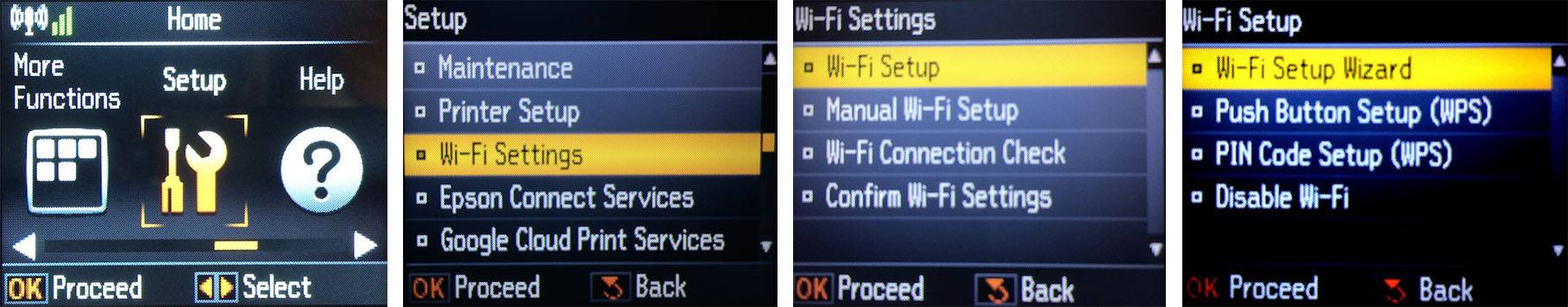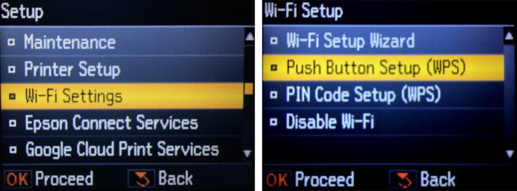 В тех случаях, когда печатающее устройство и маршрутизатор оснащены модулями Wi-Fi, но один из них или оба не могут соединиться, WPS-настройка производится через меню принтера. В нем необходимо найти блок беспроводной связи и произвести ручную настройку соединения с роутером путем выбора сети и ввода пароля. Можно упростить этот вариант — кратковременно соединить физически принтер с компьютером и выполнить аналогичную операцию через сервисные программы, поставляемые на диске с устройством, с возможностью последующего запуска в автономный режим работы.