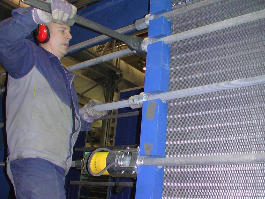 Затем пластины промывают под сильным напором воды. При помощи гидродинамической чистки все отложения на деталях ПТО удаляются. Таким образом предотвращается развитие аварийных ситуаций.