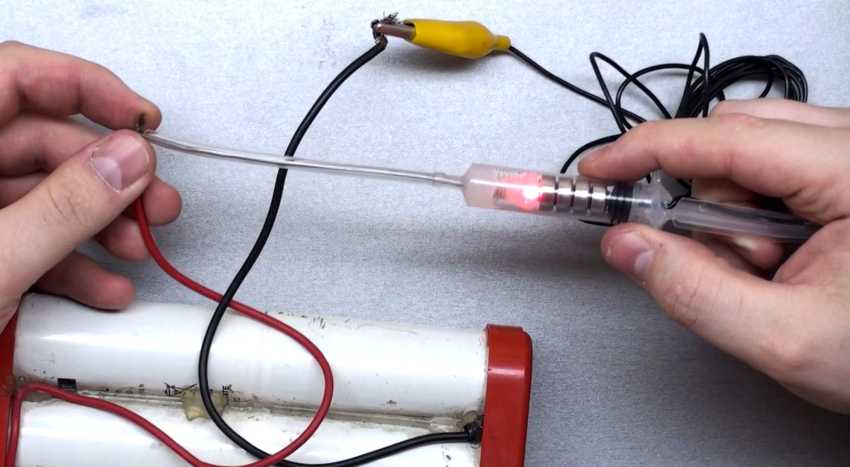 Если же электросеть с переменным током, то прижимать палец к пластине нет необходимости. Чтобы определить целостность определенной цепи, то стоит обеспечить контакт одного конца контакта с жалом, а другого — с пластиной. Свечение – отсутствие поломки в цепи.