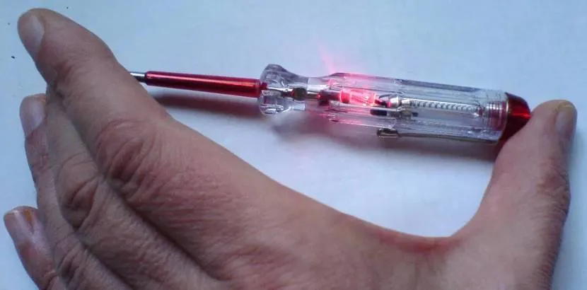 - в момент прикосновения жала к фазе, индикатор на отвертке начинается светиться.