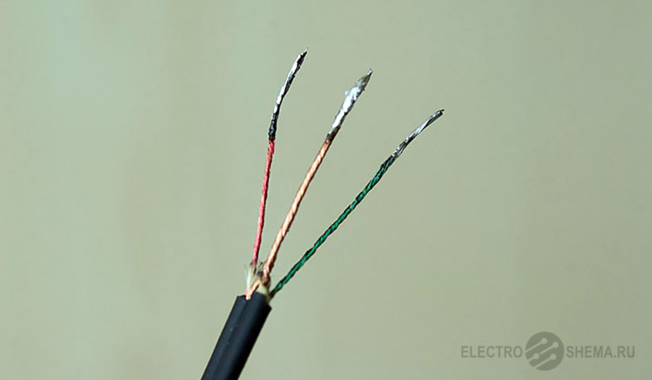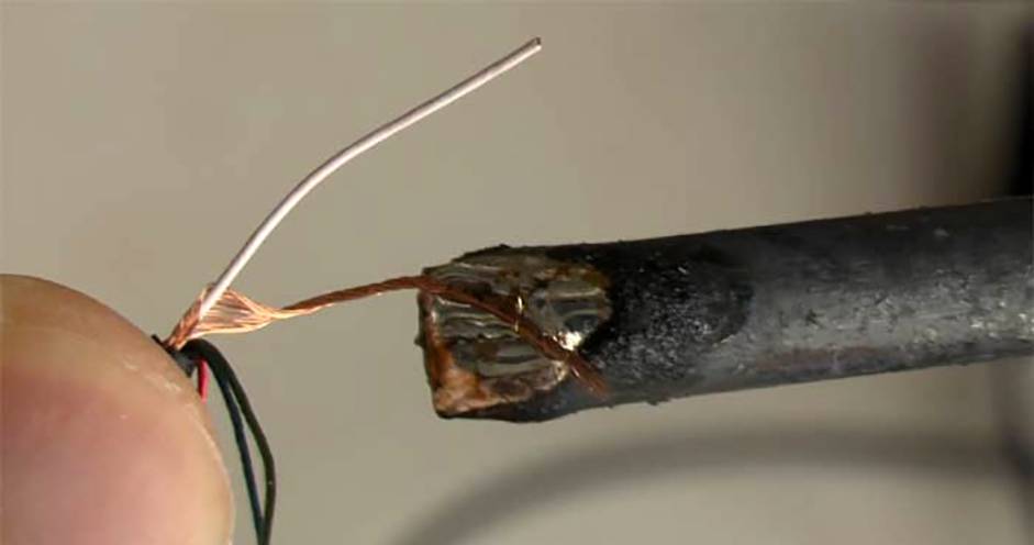 - как уже упоминалось выше, это могут быть и три провода, два из которых каналы, а один – общий экран, в этом случае просто снимаем с них изолирующий лак;