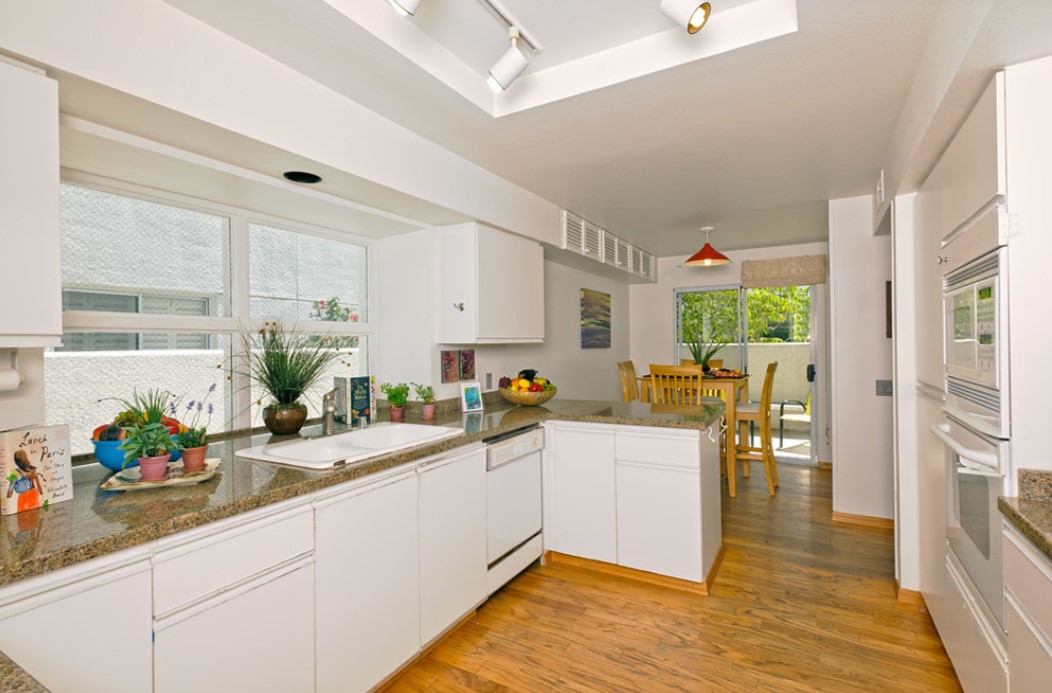 - 1Французские окна или прозрачные двери — хороший вариант, если вы хотите максимально изолировать кухню от балкона. Кухня все равно будет светлее, зато балкон будет максимально отделен.Этот вариант чаще выбирают, если на лоджии вы планируете устроить зимний сад (не все растения устойчивы к перепадам температур и высокой влажности, царящим на кухне). Подойдет он и для тех, кто хочет обустроить комнату отдыха — окна защитят вас от кухонных ароматов.