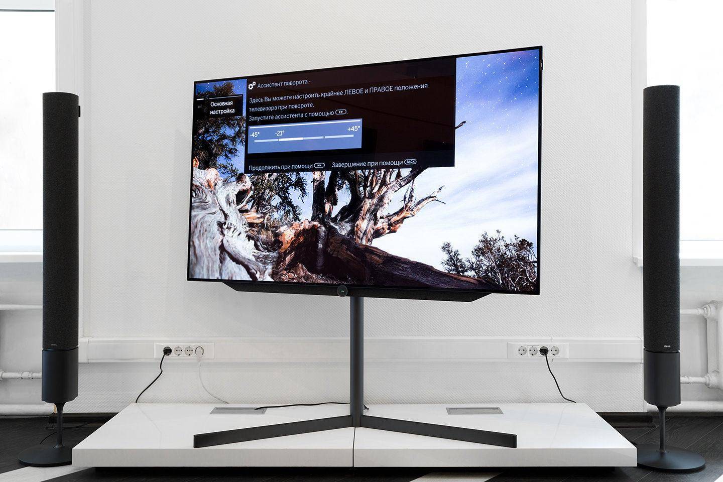Строгий классический корпус, на задней панели — декоративное покрытие, прикрывающее разъемы. Несколько вариантов установки, в том числе на моторизированной напольной подставке. Саундбар мощностью 120 Вт дает объемный звук, сравнимый с кинотеатром. Управляется собственной ОС Loewe, в которую входят приложение, запись эфира, плеер с Bluetooth, Amazon Video и многое другое. Купить модель можно за 1 099 900,00 руб. и выше.