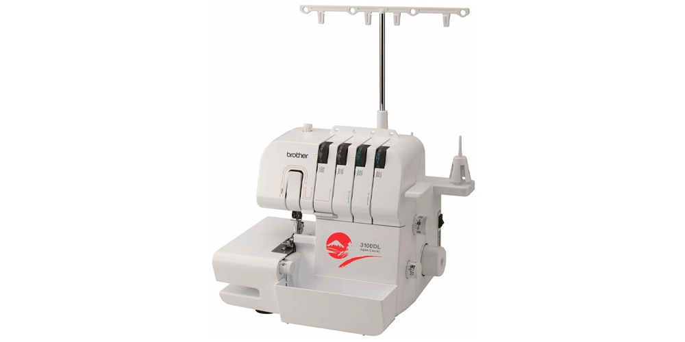 На четвёртом месте стоит Brother 3100DL. Эта модель рассчитана на создание 3- и 4-ниточных швов. Выполняет узкие и широкие швы, а лишняя ткань припусков обрезается специальным ножом. Обрезки при этом попадают в специальный лоток. По размеру он подходит для размещения педали на время хранения. Для удобства заправки нитей предусмотрена цветная маркировка на корпусе. Стойка с отверстиями для направления нитей поднимается вверх, что поможет избежать запутывания. Нижний петлитель оснащён системой FAST для обеспечения быстрой заправки.