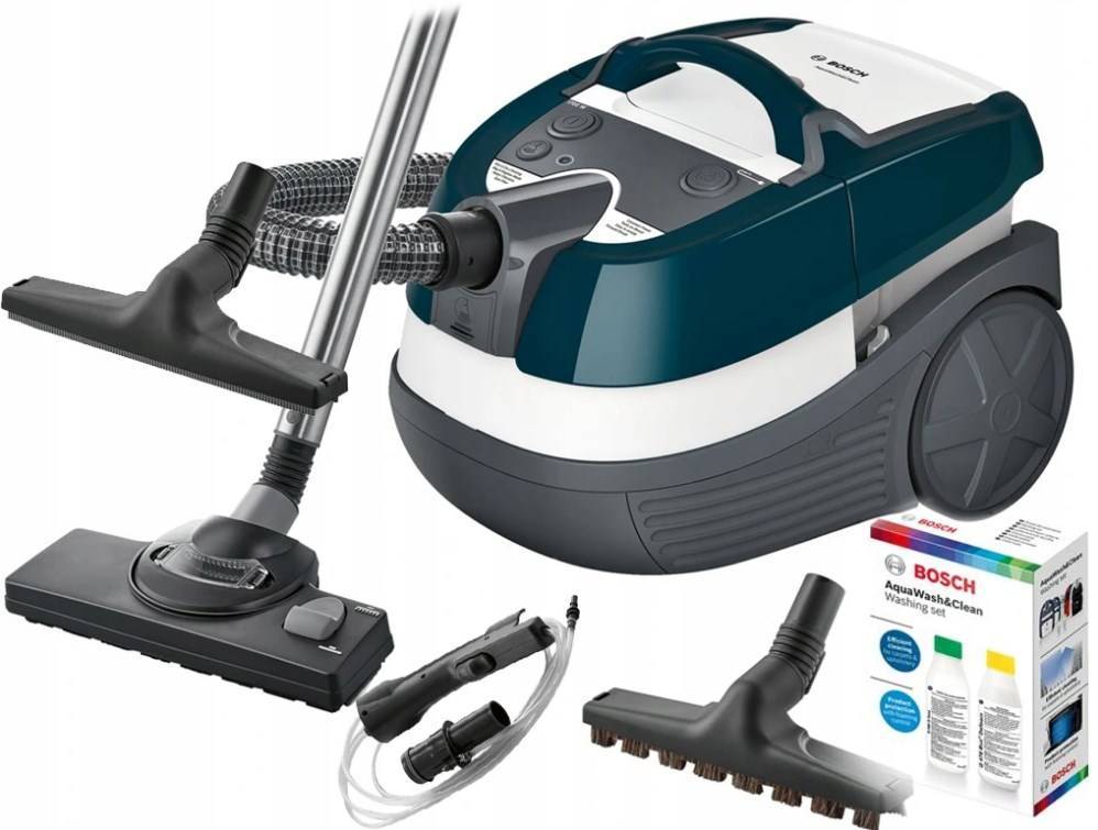 Это лучший моющий пылесос для дома из недорогих, он имеет удобную форму и внешне похож на мультиварку. Два больших колесика и ручка сверху позволяют легко перемещать его в пространстве. Аквафильтр очищает воздух, пылесборник в виде мешка собирает до 2,5 кг пыли, а три вида насадки (турбощетка, паркетная и для мойки с водой) помогают безопасно чистить почти любую поверхность. Из-за такой многофункциональности вполне можно смириться с большим весом (8,5 кг).
