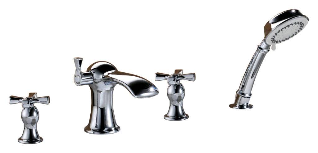 Для кухни подойдёт простой вариант с двумя кранами и загнутым краном. Для ванной, если ванна стоит отдельно от раковины, подойдёт отдельная модель в душ и отдельная для умывальника.
