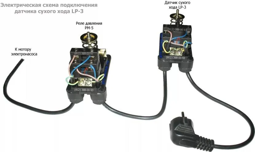 Схема подключения реле «сухого хода» и давления к насосуИсточник oooden.ru