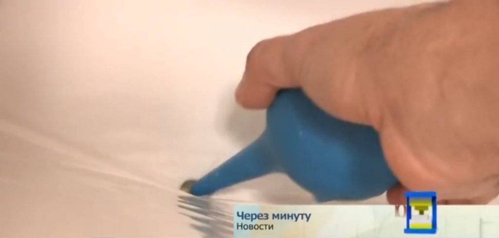 - В спринцовку набирается тёплая вода и впрыскивается в слив. Если она бурлит в трубке и свободно стекает в ёмкость — засорение устранёно.